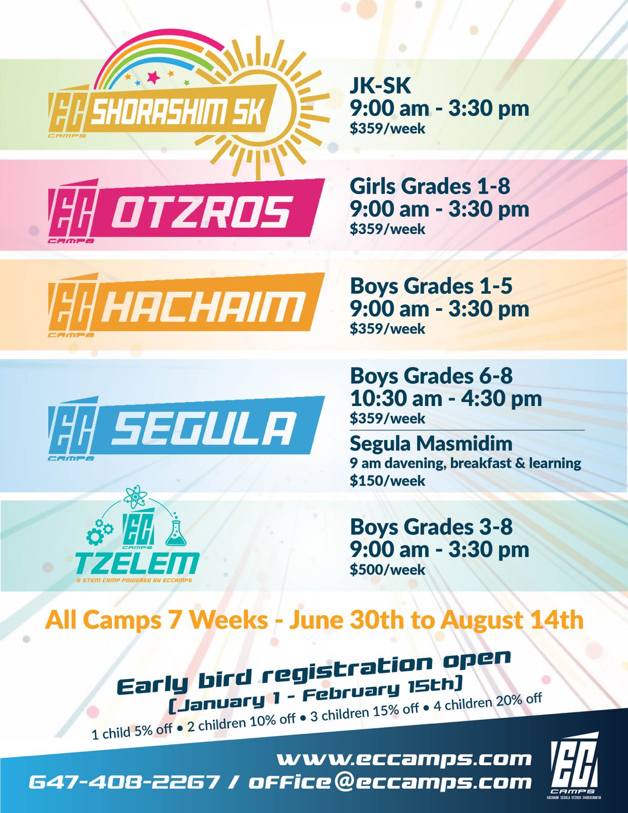 Don’t miss out on a fun-filled summer in a Torah environment. Across all divisions, Preschool, Boys, Girls, Teens. Run by experienced mechanchim and warm and energetic counselors, each child leaves EC Camps with memories that last a lifetime!