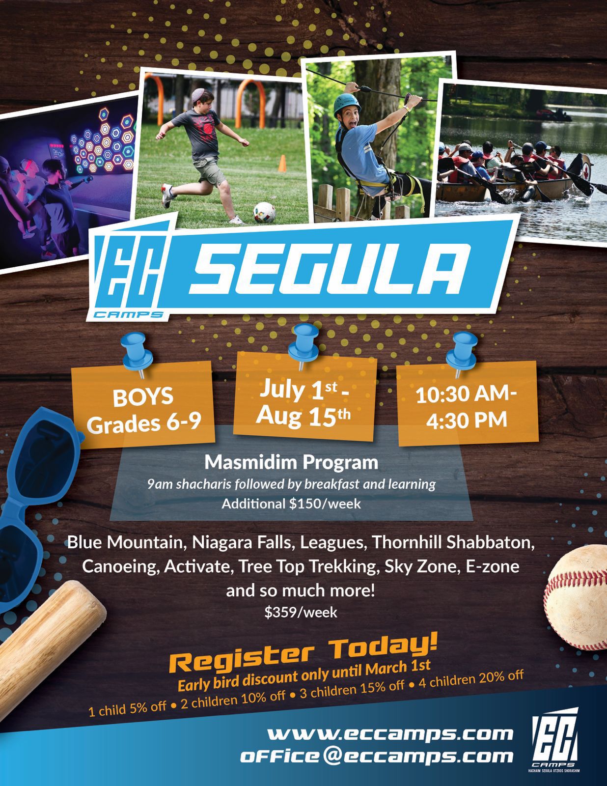 Camp Segula offers the most unique experience in our city for boys finishing Grades 6-10. There is no greater sight than seeing the Achdus that campers develop with each other, especially when they never even met before the summer!